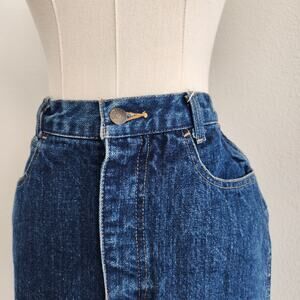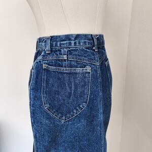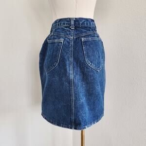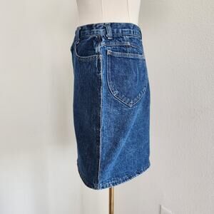 vintage 80s denim mini skirt variations pencil skirt dark wash high waist size 2 classic retro indie streetwear minimalist quiet luxury quality natural fibers blue jean skirt 1980s closet staple y2k style festival retro summer skirt