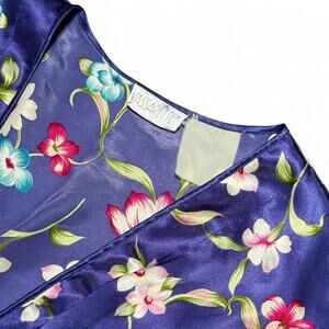 Vintage 80s Vassarette Satin Floral Kimono Robe