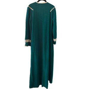 Vintage 80s Vassarette Teal Nightgown Housecoat Lace Trim & Long Sleeves Size M