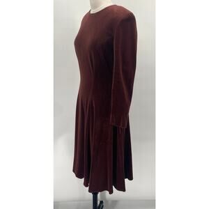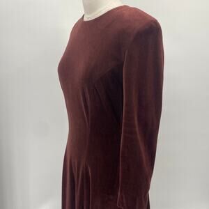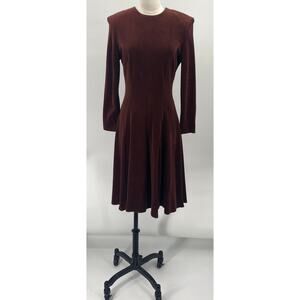 Vintage 80s Velvet Midi Dress Long Sleeve Fit & Flare Made in USA Brown Womens S