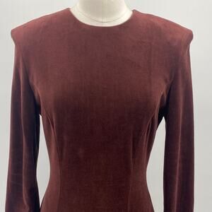 Vintage 80s Velvet Midi Dress Long Sleeve Crew Neck Made in USA Brown
