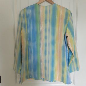 Vintage 80s Vera V-Neck Button Up Long Sleeve Stripe Top Pastels Blue Size 14