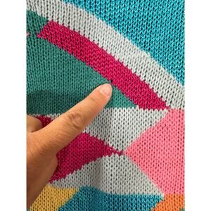 Vintage 80s Via L.A. Women’s Knit Abstract Geometric Sweater Tee size Medium