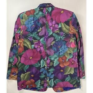 Vintage 80s Vibrant Floral Blazer Jacket Size 14 Boho Cottage Retro Chic