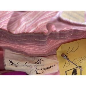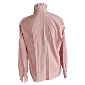 Beautiful 80s does Victorian pink long sleeve, high neck ruffle top with metallic thread & subtle stripes. Very feminine cottage core style. The tag is too faded to read but I believe this is a large. Please examine measurements carefully before purchasing. The material feels like cotton or at least a cotton blend.