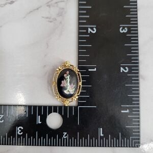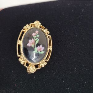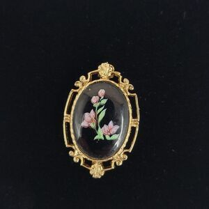80s does Victorian in this gold toned setting with black center and faux? painted flowers.
