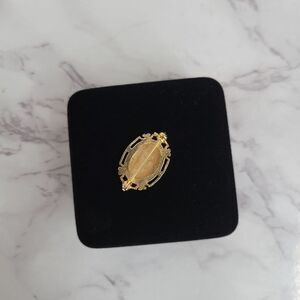 Vintage 80s Victorian Style Lapel Pin Brooch Gold Tone Black Center with Flowers