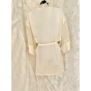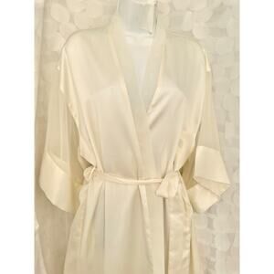 Vintage 80's Victorias Secret Ivory Satin Kimono Robe Sheer accents one size