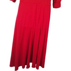 -- Walden Classics made in USA, Ladies - L(12), Pullover Midi, Crew neckline, Button-up bodice, Shoulder pads, two side pockets, belt loops, raglan 3/4 short sleeves cuffed, Solid pattern fine knit midweight material, easy care 100% acrylic fabric, in bright bold red colorway.