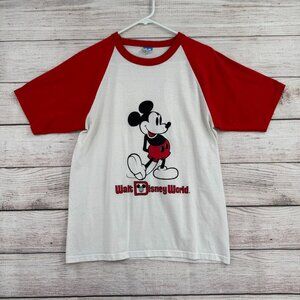 Vintage 80's Walt Disney World Mickey Mouse Raglan T-Shirt Adult Large White/Red