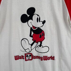 Item: Vintage 80's Walt Disney World Mickey Mouse Raglan T-Shirt Adult Large White/Red