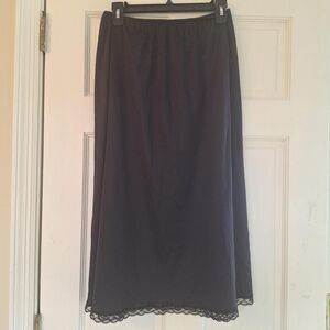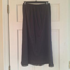 Black lace trim half slip with elastic waist