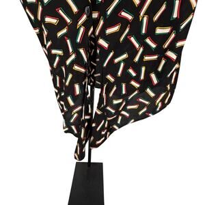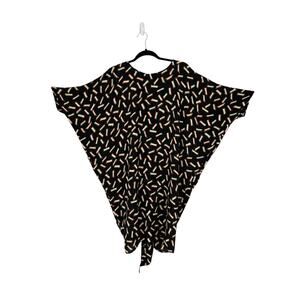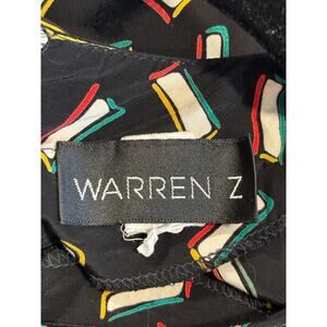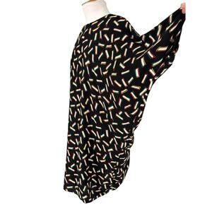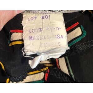 Vintage 80s Warren Z Dress Dolman Back Button Geometric Pattern Tie Up Disco Med