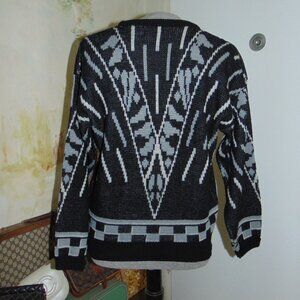 Vintage 80s Wayne Scott Sweater Men's Hand Knit Leather Black White Retro Large