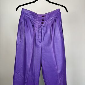 Vintage 80s West Bay Lambskin Leather Pants Purple High Waist Pleated Tapered