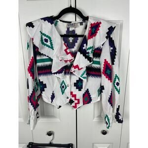 Vintage 80s Western Circle T Marilyn Lenox Boho White Blouse and Skirt Set Med