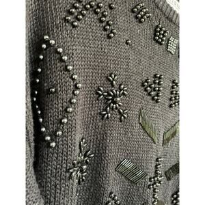 Vintage 80s Western Connection Large Black Beaded Knit Sweater, Relaxed Fit