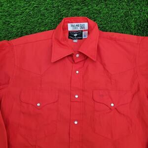 VINTAGE 80S FLYING RANCHER BUTTON SHIRT, M/L 22x31, RED WESTERN PEARL SNAP, RUDDOCK MFG COMPANY SHIRT, RETRO COWBOY WESTERN WEAR, CLASSIC WESTERN PEARL SNAP, RANCHER STYLE SHIRT, VINTAGE WESTERN RED SHIRT, 1980S COWBOY FASHION, FLYING RANCHER SHIRT