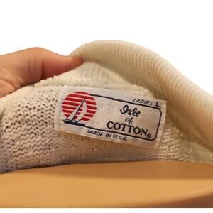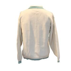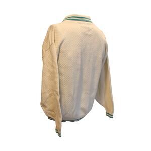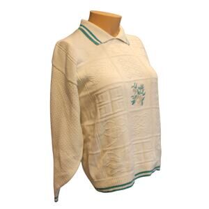 Vintage 80s White Floral Knit Preppy Collegiate Striped Hem Sweater Size Large