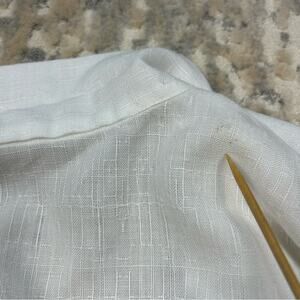 Vintage 80’s White Summer Open Blazer Linen Blend Large. No size tag but approx large - see photos for measurements. Cropped 3/4 inch sleeves. Front pockets. There are a few very small spots that I’ve also included in the photos. Hardly noticeable. Shoulder pads too!!!