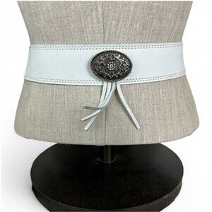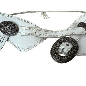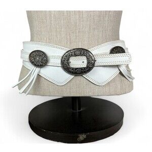 Liz Claiborne 80s Vintage 2647 White Leather Western Concho Fringe Belt