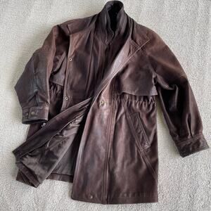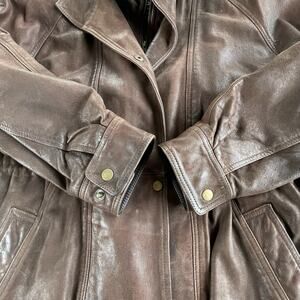 Vintage 80s Wilson’s 100% Leather Cinched Waist Mid Length Classic Jacket Size L