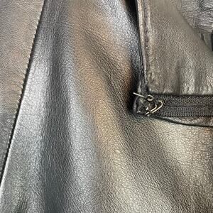 Vintage 80s Wilsons Leather Black High Waist Flared Below Knee Skirt Womens 25 6
