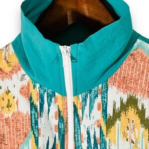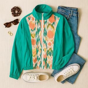 Vintage 80s Windbreaker Jacket Seafoam Green Ikat Print Size M