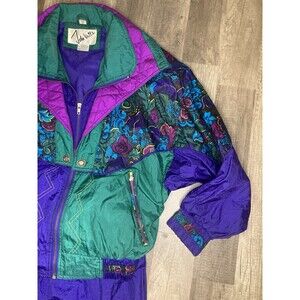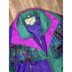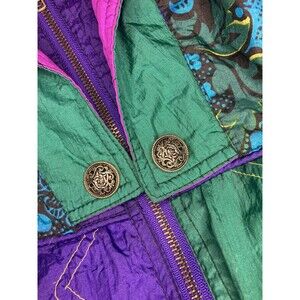 Vintage 80s Windbreaker Track Wind Suit Womens 90s Nylon Size S Purple Green Lined
