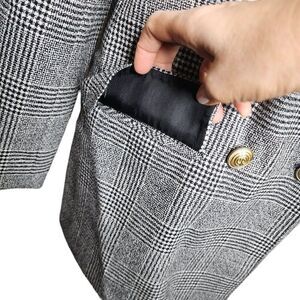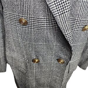 Vintage 80s Windowpane Check Double Breasted Boxy Blazer Womens Size 10 Black Wo