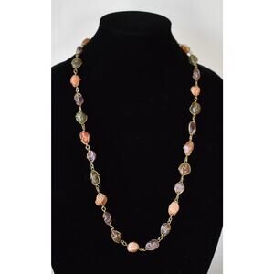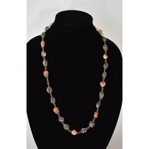 Vintage 80s wire wrapped polished multi stone necklace. Single strand measures 30" end to end.