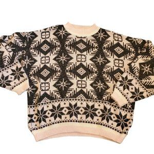 Vintage 80s Womens Barbiecore Skiwear Nordic Sweater Pastel Pink Gray M/L