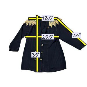 Vintage 80s Womens Black Double Breasted Blazer Size XL Gold Lace Embellishment