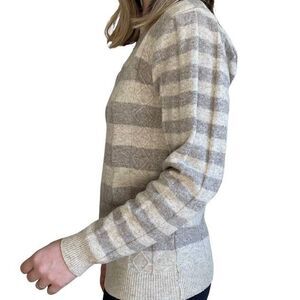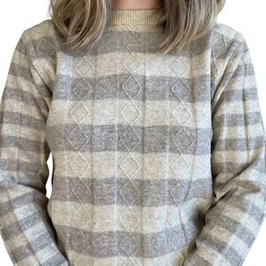 Vintage 80s Womens Brown Cream Striped 100% Lambswool Soft Crewneck Sweater Sz M