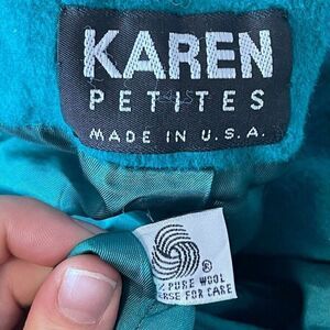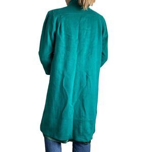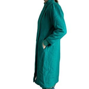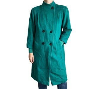 Vintage 80s Womens Green 100% Wool Retro Long Double Breasted Trench Coat Sz M