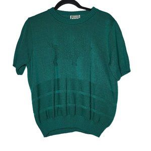 Vintage 80's Women's Keneth Too Terrier Dog Knit Short Sleeve Sweater Size Large
