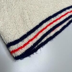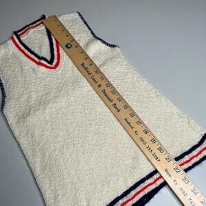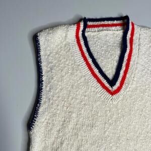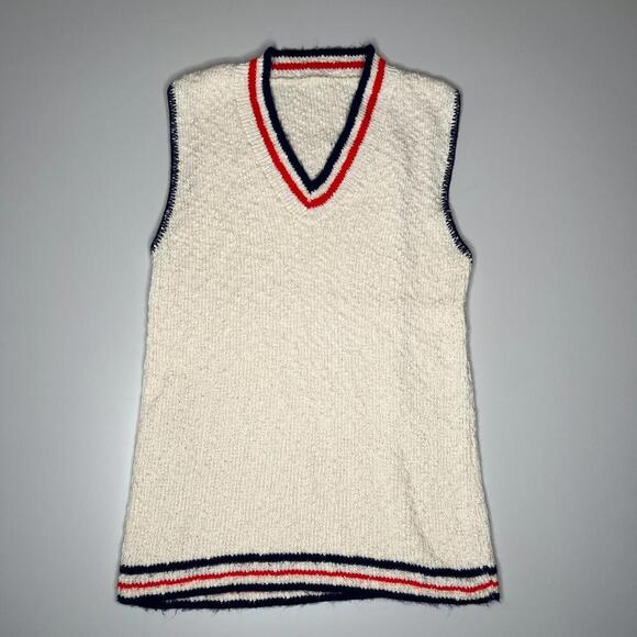 Vintage 80s Women’s Knit Sweater Vest – Size M, White with Red & Navy Trim
