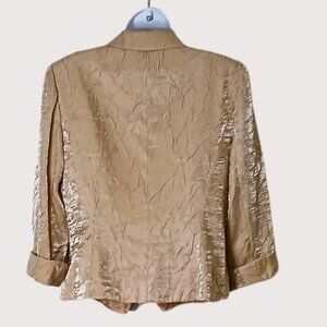 This elegant vintage set features a textured crepe fabric with shimmering appeal.