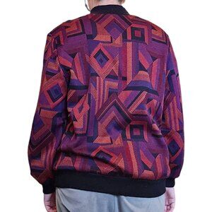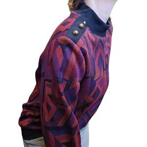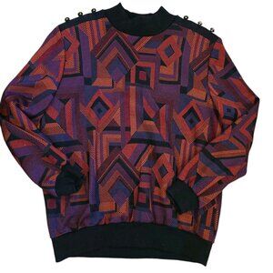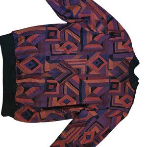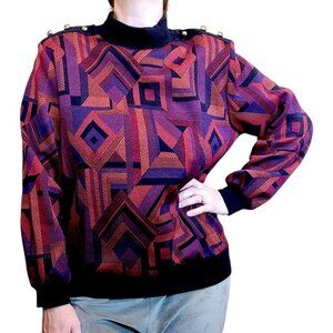 Vintage 80s Womens M Geometric Sweater Mockneck Psychedelic Orange Purple Retro