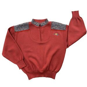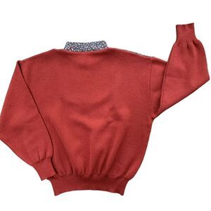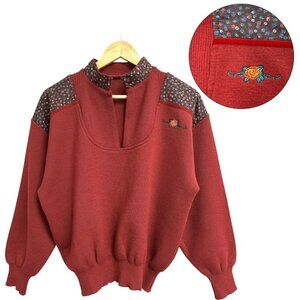 Vintage 80s Womens Mock Neck Sweater Small Rust Micro Floral Embroidered Fall