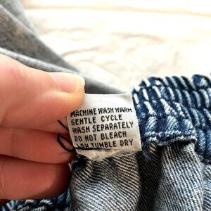 Vintage 80s "TACTICS" Women's Adjustable High Waist, Tapered Leg, Acid Wash, Mom Jeans in blue acid wash denim. Hook and loop adjustable waistband. 100% Cotton has No Stretch.