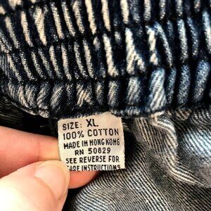 Size tag is Vintage US XL. Size is estimated as a contemporary US EXTRA LARGE, based on measurements. Because the waist is adjustable, the sizing can adjust DOWN to a 26" waist, or SMALL with a wide hip and oversized look.