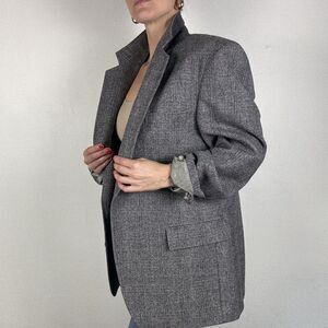 Vintage 80s Wool Herringbone Blazer Gray Oversized Menswear Jacket | Adams Row