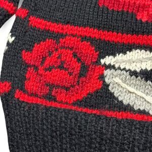 Vintage 80s Wool Rose Cardigan Sweater Black Red Rose Floral Knit Cottagecore M