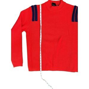 Vintage 80’s Wool Ski Sweater Red W/ Blue Stripping Mock Neck Men’s M