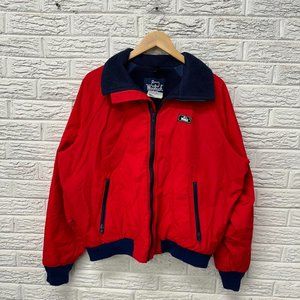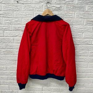 Vintage 80s Woolrich Shelled Sherpa Lined Bomber Zip Up Jacket Red / Blue Large
