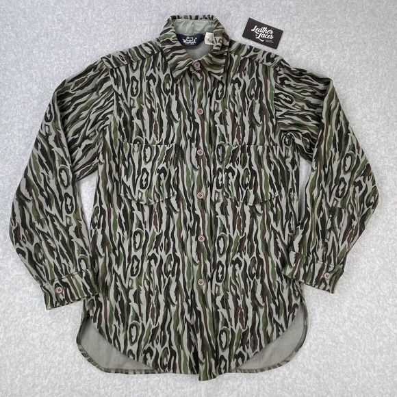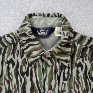 Vintage 80s Woolrich Wool Button Up Shirt Mens Small Tree Bark Camo Made In USA