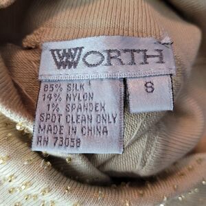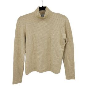 Vintage 80's Worth Silk Beaded Mock Neck Sweater S Gold Tight Knit Holiday