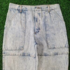 Vintage 80s Wrangler acid wash jeans 30x28 high rise pleated moto seam baggy tapered USA denim