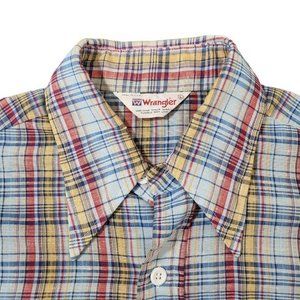 Vintage 80s Wrangler Western Plaid Button Front Long Sleeves Men's Shirt